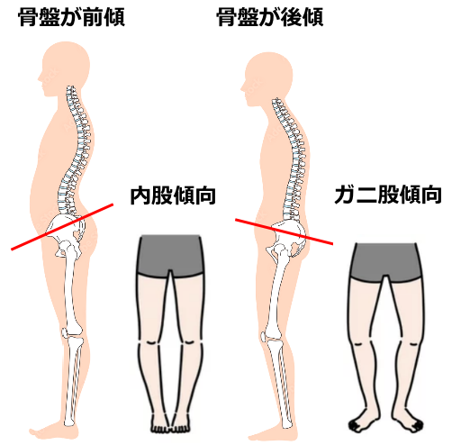 男性と比べて女性は股を開く習慣が少ないです。むしろ閉じる方の意識が強いと思います。10代〜20代の女性でつま先を内側に向ける内股の癖をつけてしまうと、骨盤が前傾しやすくなり、そのバランスをとるために腰を反らせて反り腰になっている方が多く見られます。